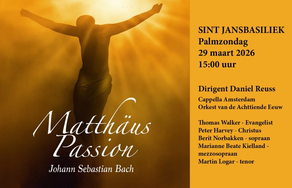 P.OP PALMZONDAG 29 MAART OM 15:00 UUR BENT U VAN HARTE WELKOM IN DE SINT JANSBASILIEK IN LAREN VOOR EEN BIJZONDERE UITVOERING VAN DE MATTHÄUS PASSION VAN JOHANN SEBASTIAN BACH.